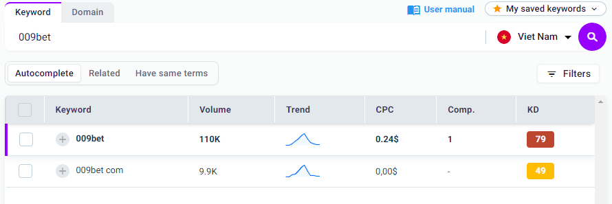 Đối với keywordtool.io thống kê cho thấy từ khóa “009bet” hiện đang có tới 110.000 lượt – tìm kiếm trên Internet.
